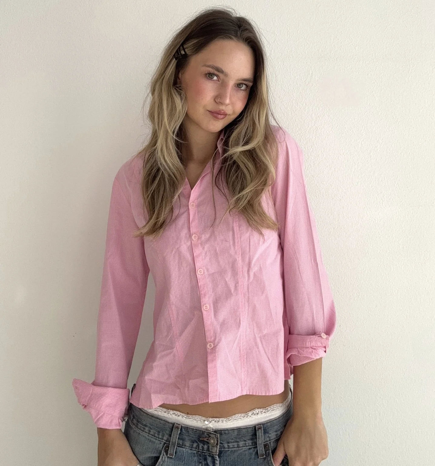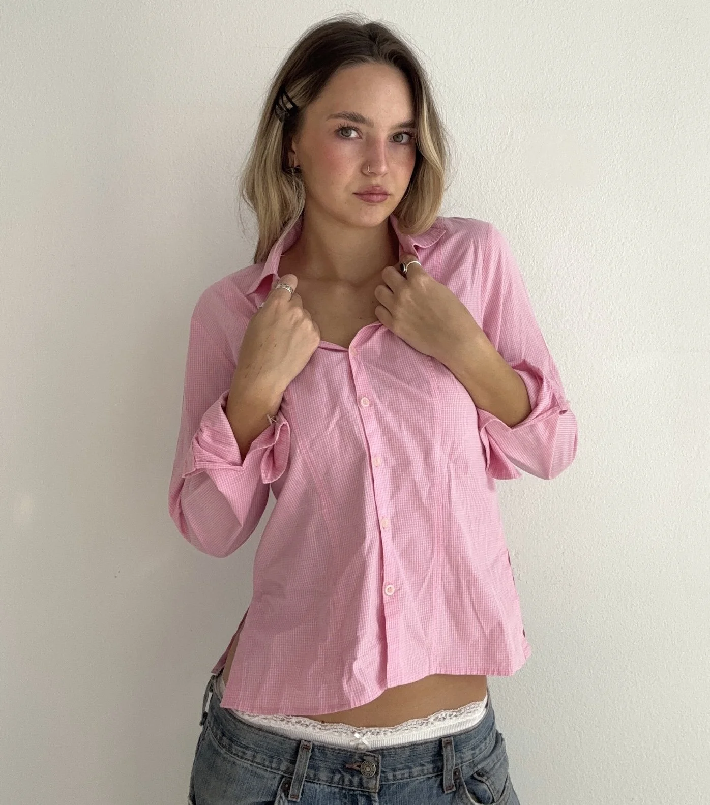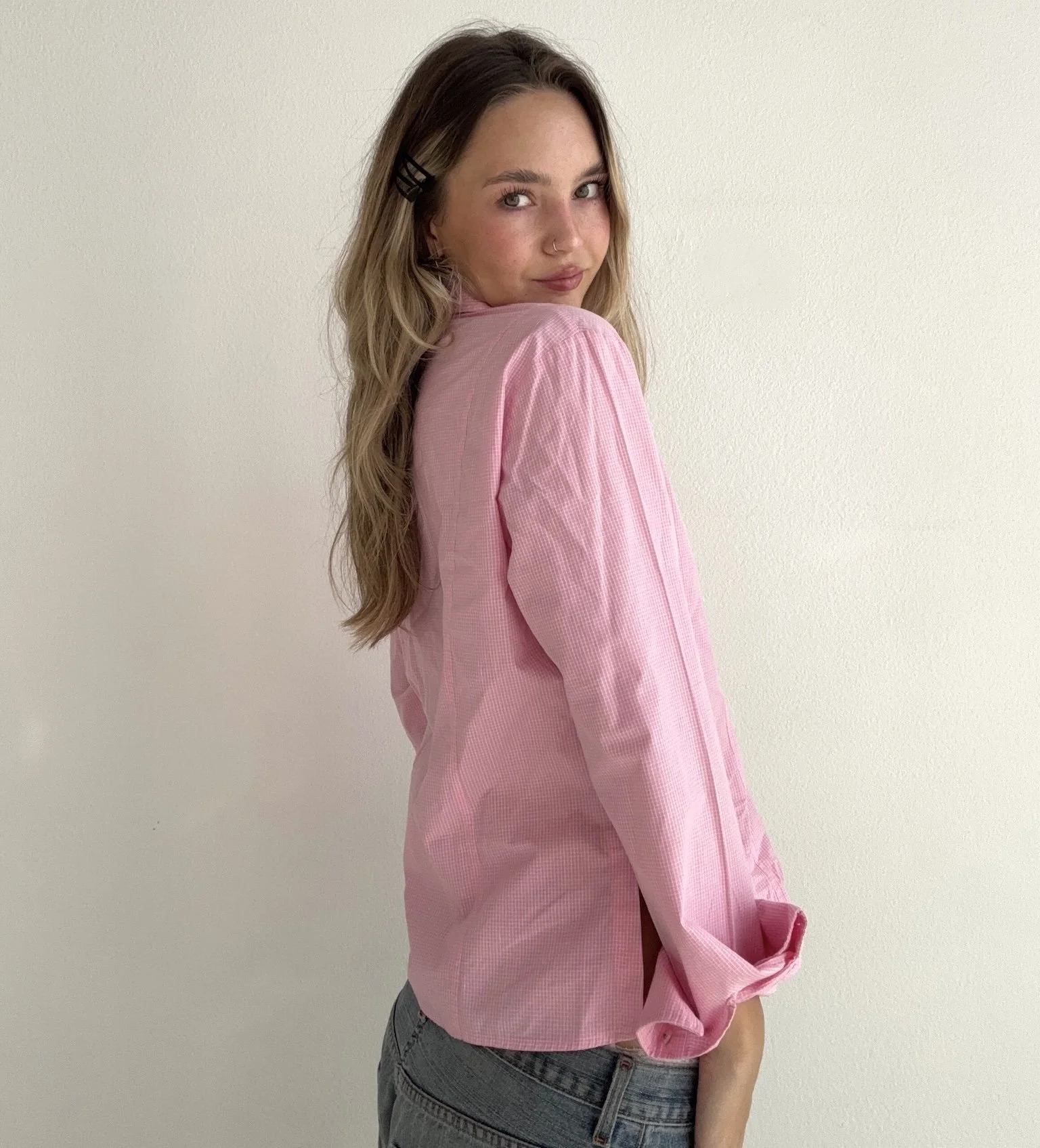π The sweetest soft pink gingham button up.